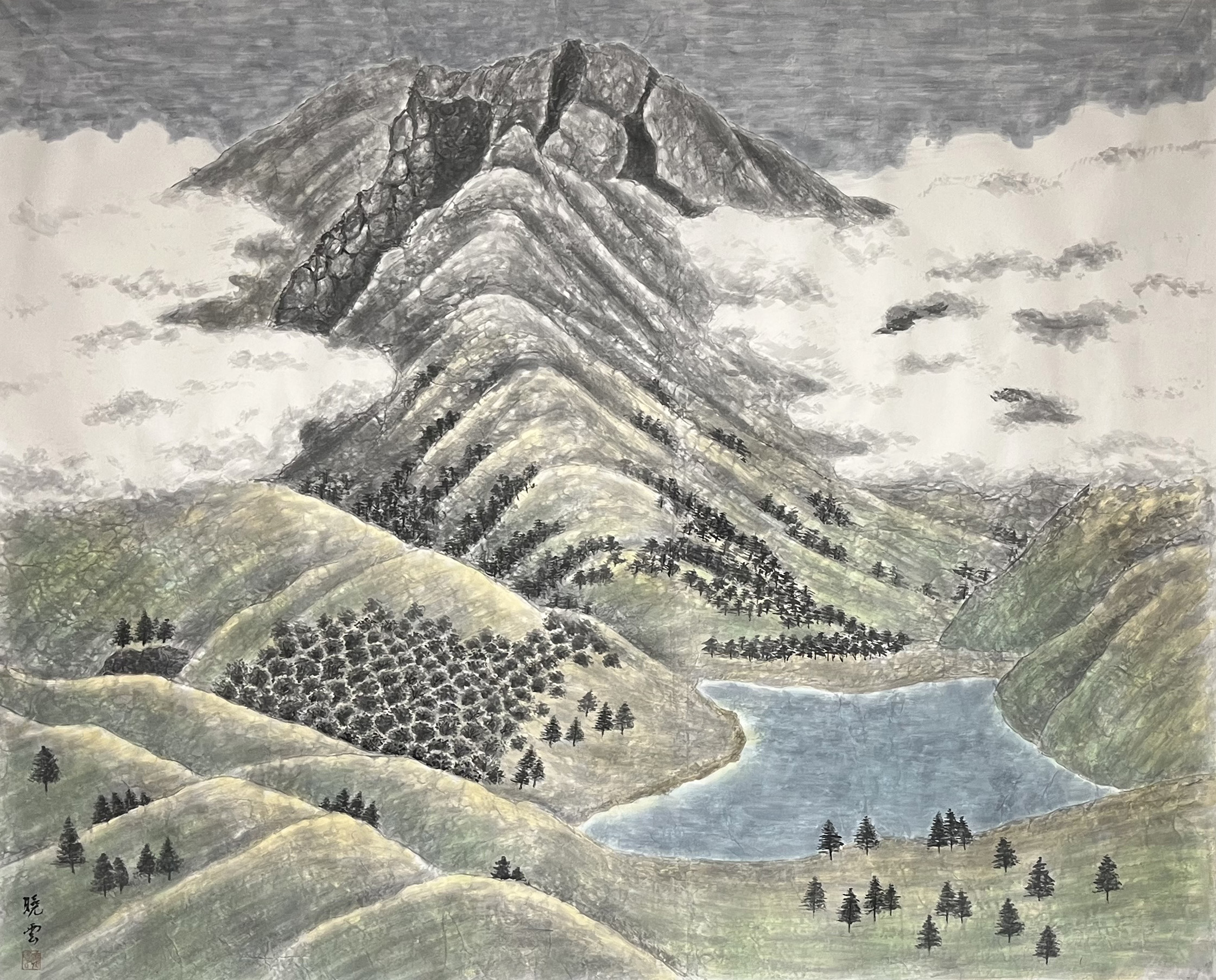 雲霧林をテーマにした水墨画。第76回南画院公募展に出品した作品。