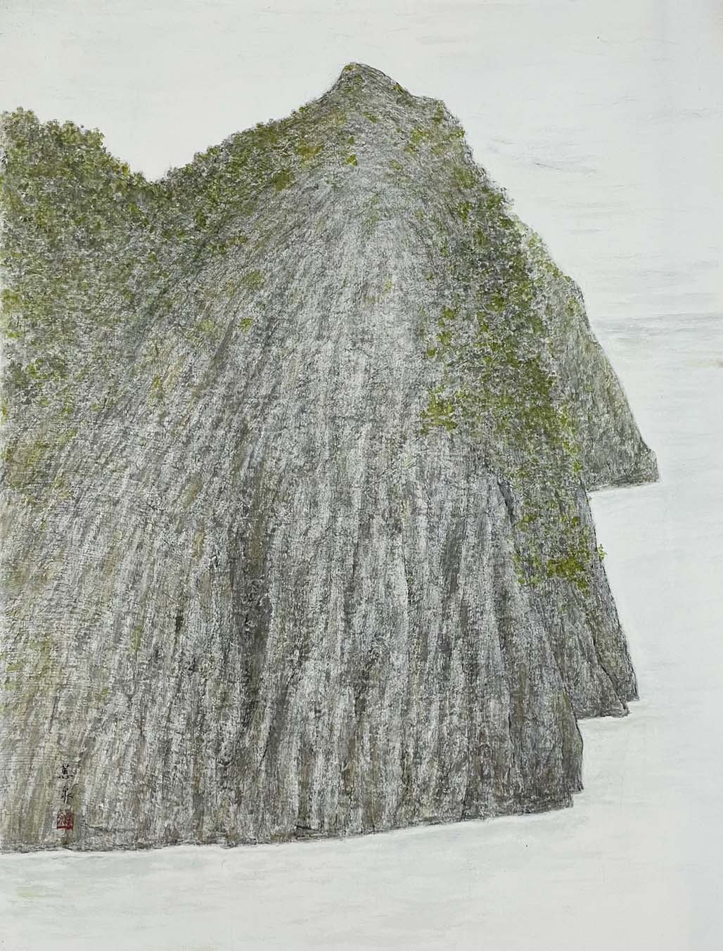 霧がかかる岩山の麓に聞こえる松風の音をテーマにした作品。第47回墨友会展および第76回南画院公募展に出品。